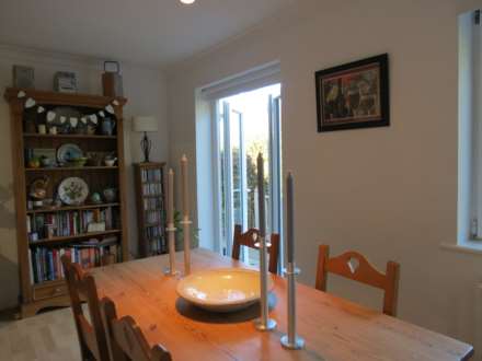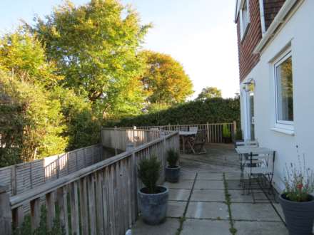 If you are looking for a family house right in the centre of town then this could be it! The entrance of the house is down some steps from a quiet dead end street. The hallway is a good size and very light, to the left of the front door, the garage has been converted into a third reception room, making a great playroom or teenage room. The main living room again is very light with laminate flooring throughout and has a fireplace and double doors into a dining room. The kitchen is open to a pretty breakfast room at the back of the house, looking over the garden and deck area. Upstairs are three double bedrooms and one single, the master bedroom has an ensuite and the family bathroom was newly installed about 18 months ago. Available immediately unfurnished